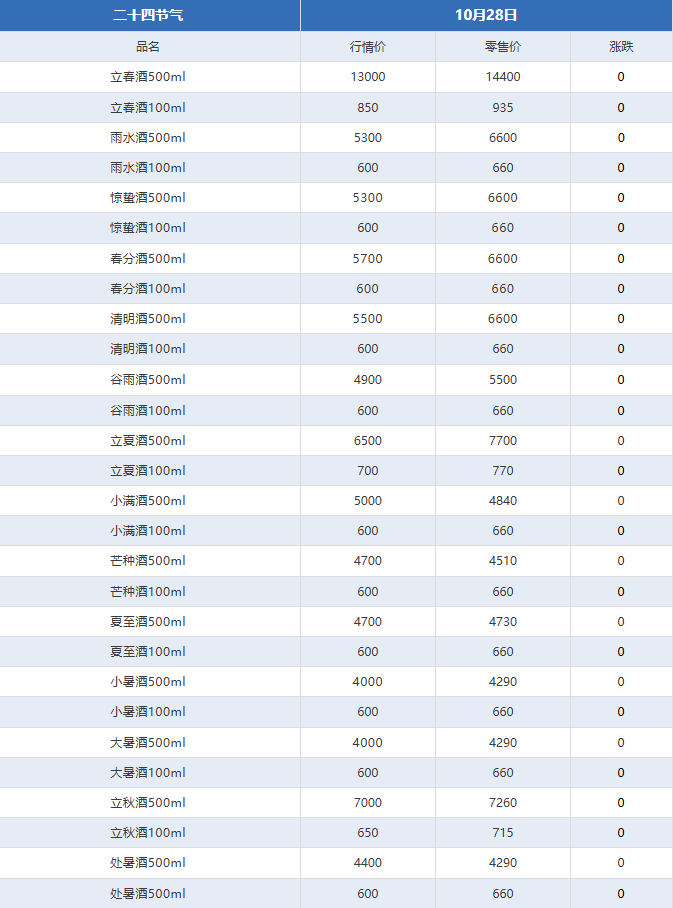 茅台继续下跌!茅台酒10月28日行情价
